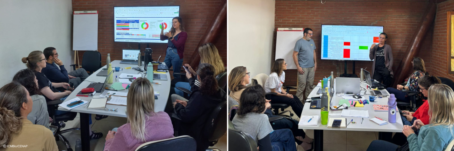 The workshop was organized by CENAP/ICMBio and brought together members of the Technical Advisory Group (GAT) of the PAN Ariranha. The GAT is a collective body that represents all participants from the plan’s initial planning meeting and plays a key role in its implementation and monitoring. This group includes professionals, researchers, and representatives from institutions directly engaged in the conservation of the giant otter and its ecosystems.