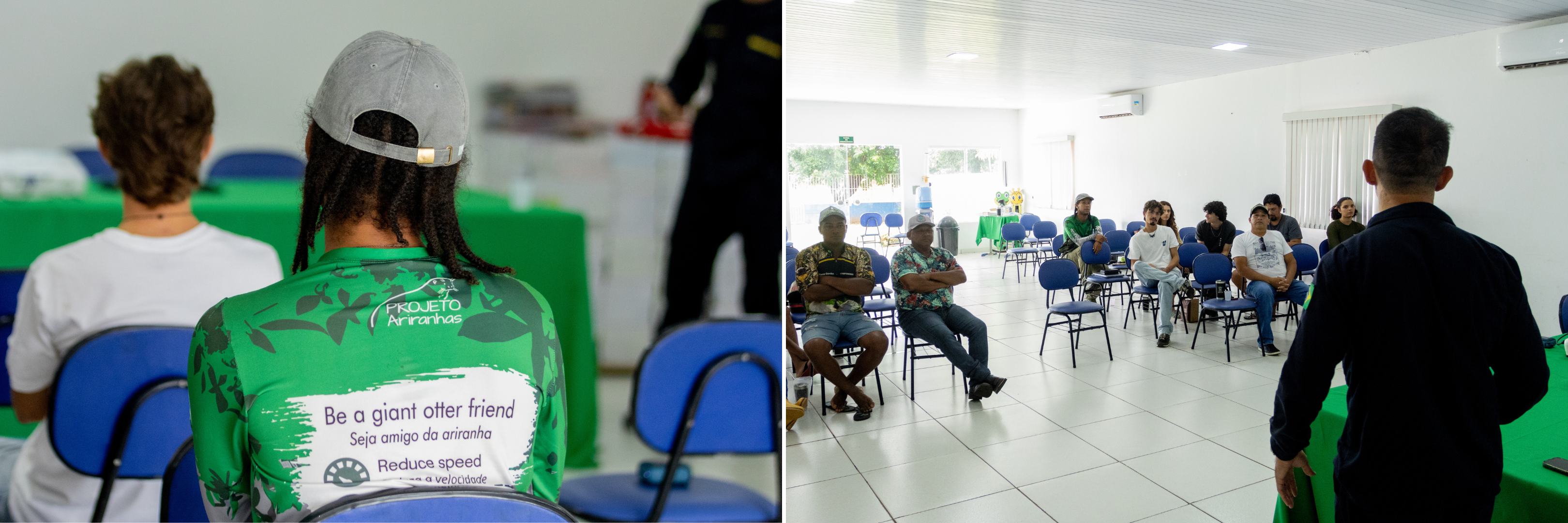 In February, Projeto Ariranhas participated in the “Workshop for Boat Drivers: Wildlife Observation, First Aid and English for Ecotourism”, held in Poconé (Mato Grosso, Brazil) at the Madalena Eubank Auditorium. The activity brought together 22 boat drivers, professionals who play a key role in nature tourism in the region.